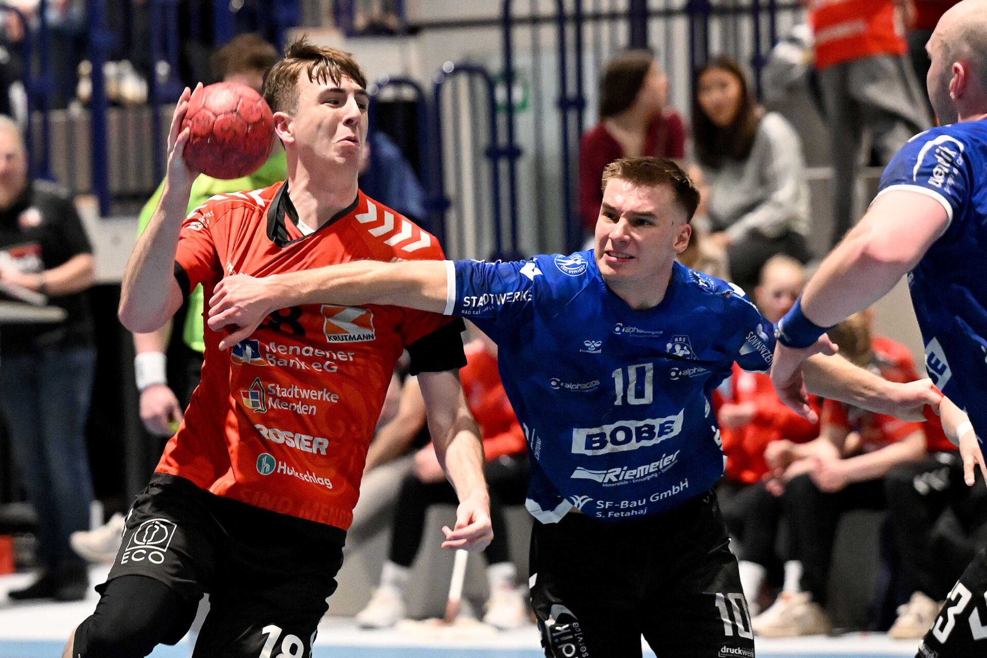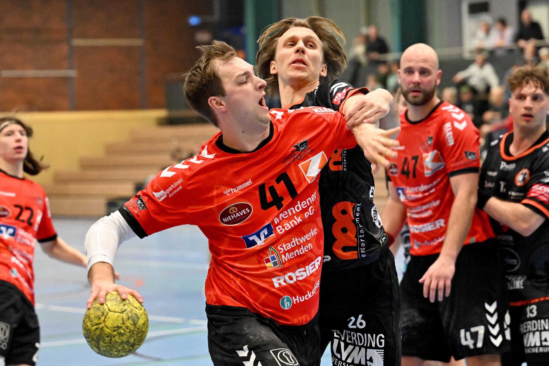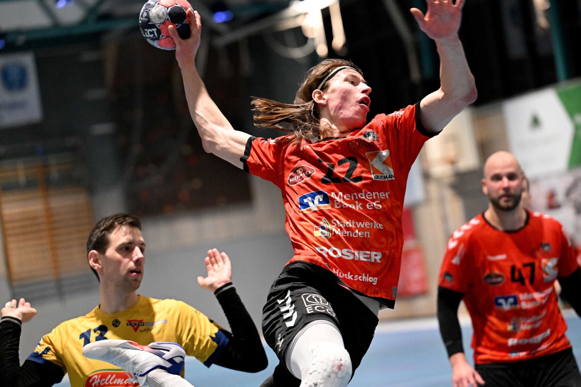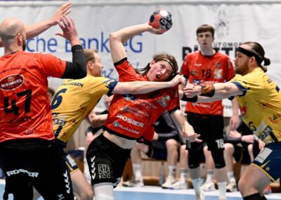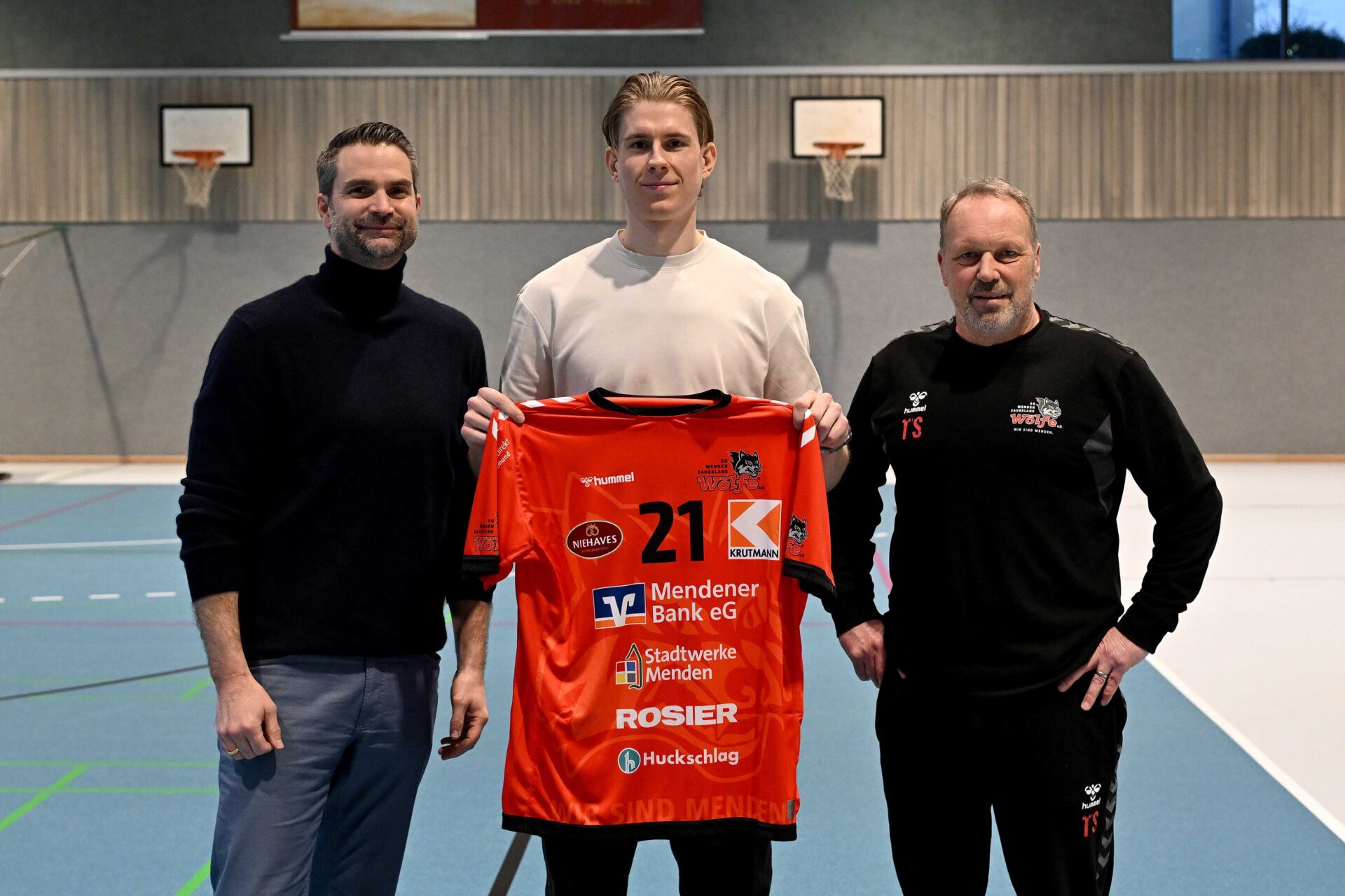 Aktuelle Fotostrecke der SG Menden Sauerland Wölfe aus der Regionalliga-Saison 2026. Derweil hat die SG Anfang März 2026 für eine absolute Sensation gesorgt und verpflichtete einen Spieler aus der Handball-Bundesliga für die kommende Saison 2026/27. Kim Voss-Fels, seit Januar 2026 beim Bergischen HC unter Vertrag und zuvor fünf Jahre bei Zweitligist Eintracht Hagen am Ball, hat beim heimischen Regionalligisten einen Vertrag über zwei Jahre unterschrieben – und soll in der kommenden Spielzeit maßgeblich seinen Teil dazu beitragen, dass es mit dem Drittliga-Aufstieg der Wölfe klappt.